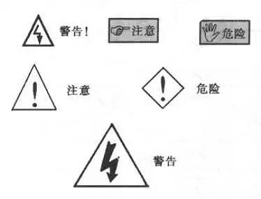不論是何種樣式的標志 通常在旁邊都寫著警語的內容 這是提醒人們一定需要留神 標志簡單醒目 即使目不識丁看到這些警語標志也會引起警覺