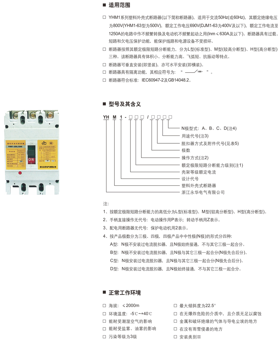YHM1系列塑料外殼式斷路器